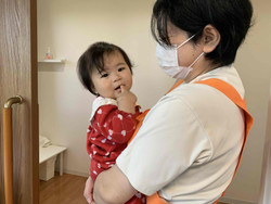 初めての病児保育、おもちゃを出すと泣き止んでます![]()